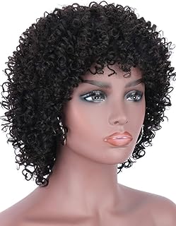Beauart 11†Brazilian Remy 100% Human Hair Wigs Afro Kinky Curly Wigs for Black Women Full Head Kinky Curls Wig with Hair Bangs + Free 2 Pieces Wig caps