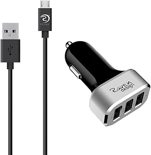 Raven design [Certifié ANDROID] Kit Raven design® Câble Micro USB vers USB Résistant 1 mètre + Chargeur Allume Cigare x3 Ports USB charge Rapide 3,6A pour Smartphone