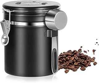 SUNASQ Boîte à Café Hermétique, Pot de café hermétique, récipient à café en Acier Inoxydable, bocaux de Stockage de thé et de café avec cuillère à mesurer et Pot de café à Valve de libération de CO2.