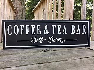 Monsety Café et thé Bar Panneau Café et thé Sign Café et thé Barre Farmhouse Décor Café signer les amateurs de café cadeau amateur de thé Cadeau 20,3 x 55,9 cm antique Cabine Décoration murale plaque