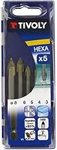 TIVOLY 12000770001 Coffrets 5 Forets Verre Technic, Queue Hexa, Ø3, 4, 5, 6, 8mm Tige hexagonale