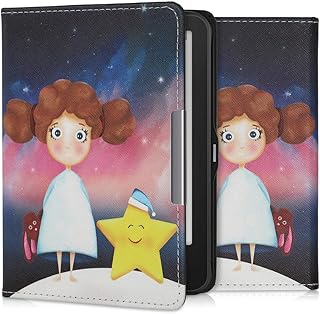kwmobile Étui liseuse Compatible avec Tolino Vision 5 - Housse avec Rabat magnétique en Simili Cuir - Enfant Mignon Jaune-Rose Clair-Bleu foncé
