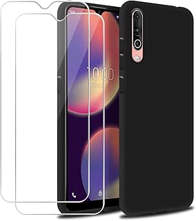 Reshias Coque pour Wiko View 4, Souple Noir TPU Silicone Housse Étui avec Deux Film Protection d'écran en Verre Trempé pour Wiko View 4 / Wiko View 4 Lite (6,52 Pouces)