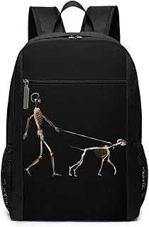 Sac à Dos A Humor Skeleton Skull Walking His Dog Unisex Laptop BackpackBusiness Travel Computer Bag Backpack Classic Lightweight Resistant Backpack 17 inch Schoolbag Book Bag for Men Women
