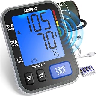 Tensiomètre Bras Electronique, RENPHO Tensiomètre Intelligent Professionnel avec Haut-parleur, Détection Automatique d'Hypertension avec Brassard Extra-large 22-42 cm, 2 * 120 Enregistrements