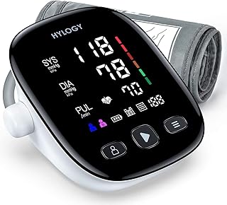 HYLOGY Tensiomètre au Bras, Tensiomètre Électronique Automatic au Bras, Grand Écran LED, 2×90 Mémoire avec Brassard 22-42cm, Détection Irrégulière de la Fréquence Cardiaque
