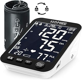 HOMIEE Tensiometre Bras Electronique avec Grand Écran Rétro-éclairage LCD 5',Tensiometre Brassard 22-42 CM,2 Utilisateurs de 180 Mémoires,Détection de Pulsations Cardiaques Irrégulières